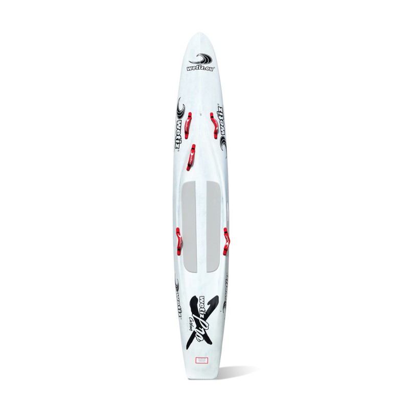 La planche va livrer avec quatre poignées et elle a été plastifié en blanc pour défendre le carbonifère de la chaleur sur la plage.